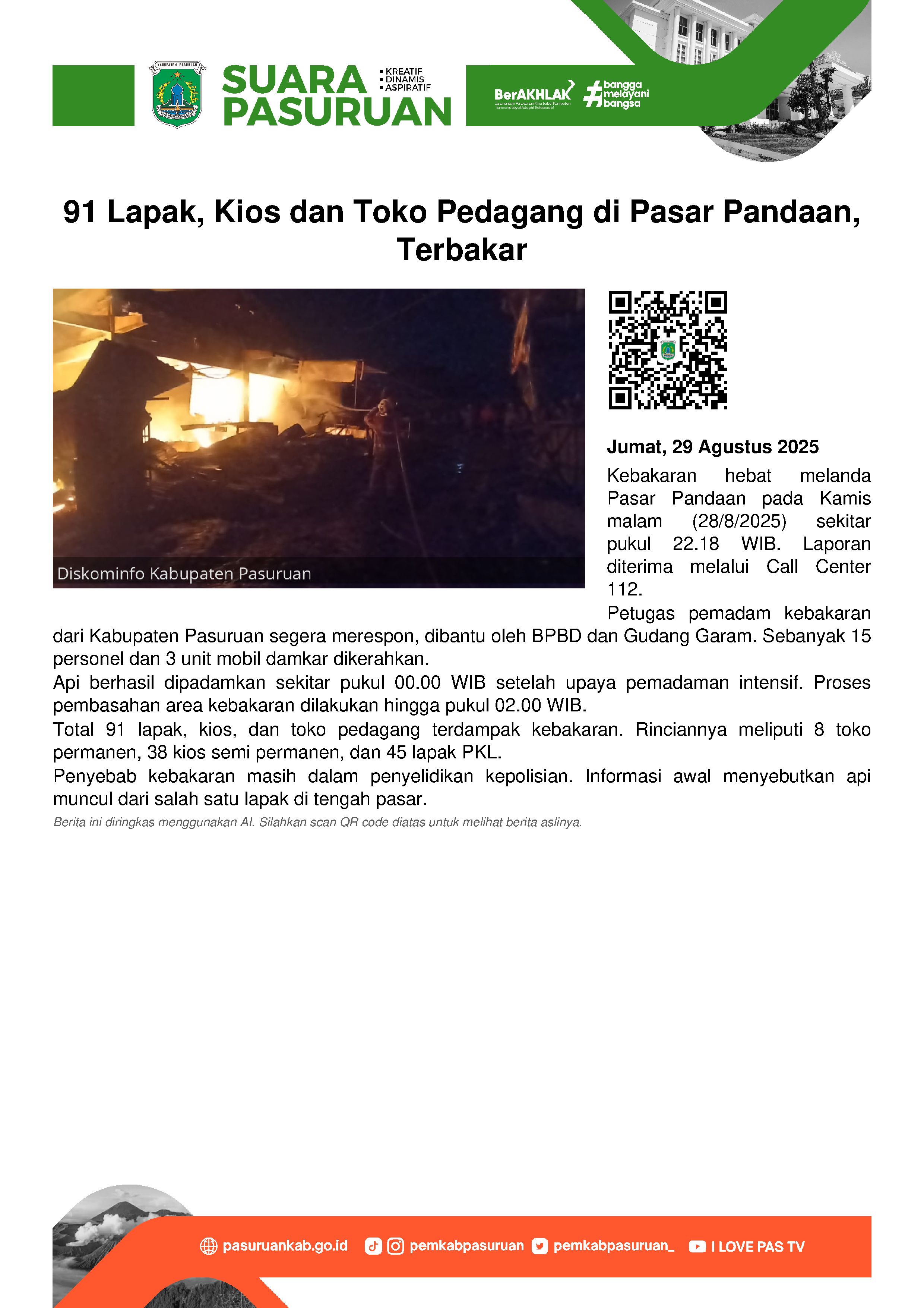 Pengesahan ketiga Raperda ini dilaksanakan dalam Rapat Paripurna Persetujuan Raperda non APBD tahun anggaran 2025 di Ruang Paripurna DPRD Kabupaten Pasuruan, Selasa (15/7/2025) siang.