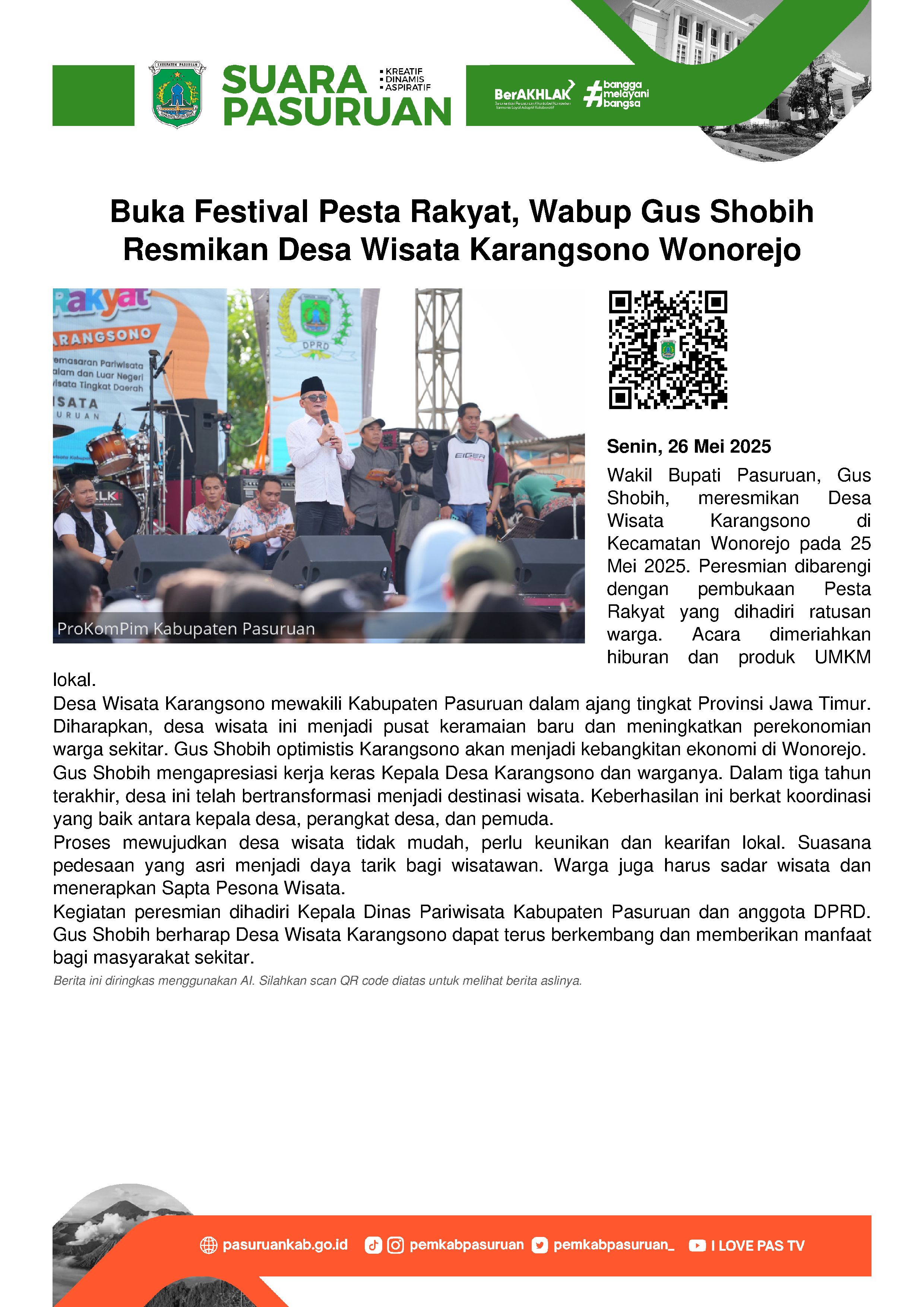 penghujung Mei 2025, Kabupaten Pasuruan memiliki satu Desa Wisata lagi yang
