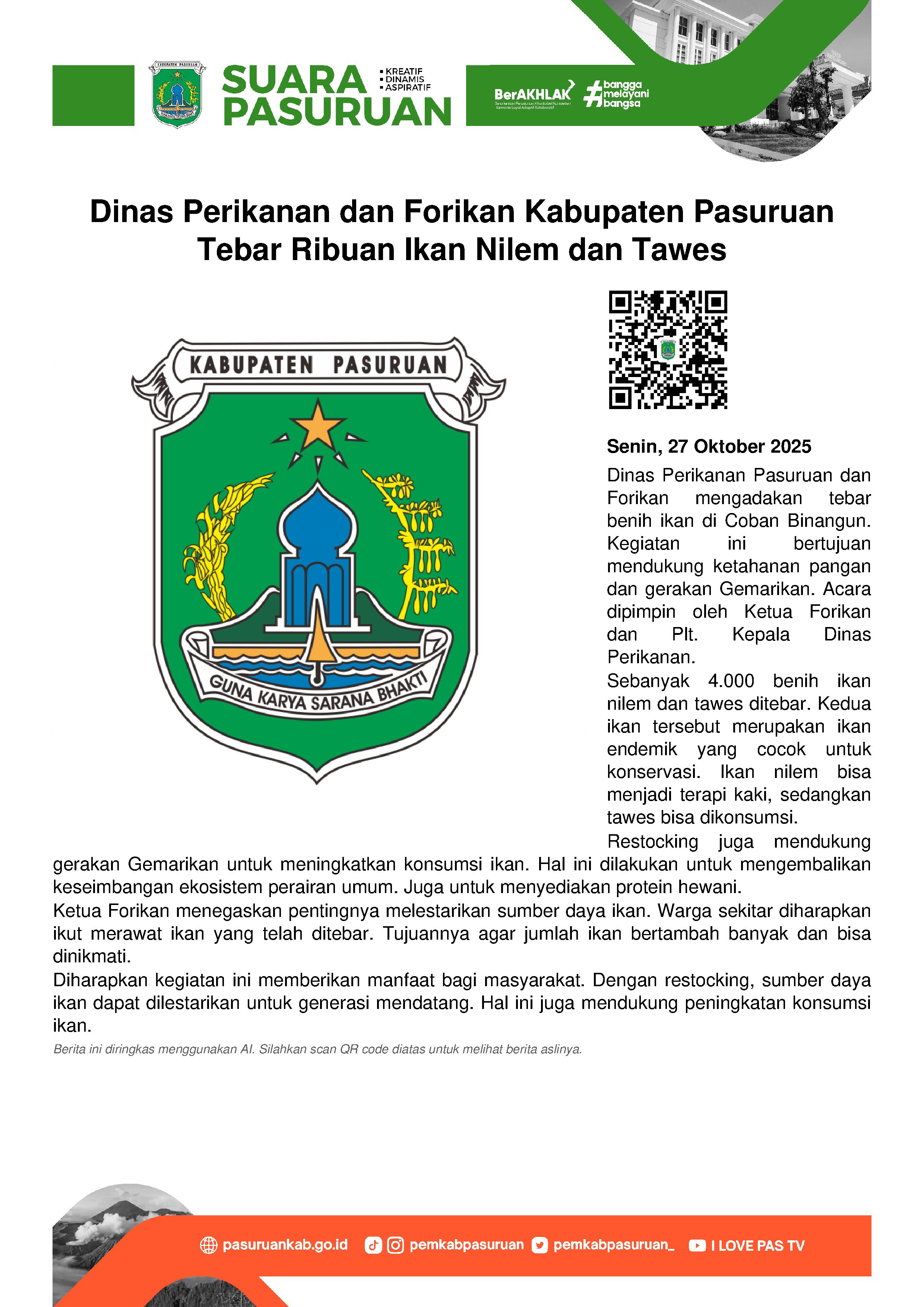 “Semoga semangat Hari Jadi Kabupaten Pasuruan tahun ini bisa menambah semangat kita juga untuk sama-sama menjadikan Kabupaten Pasuruan yang gema ripah loh jinawi, toto tentrem karto raharjo,” terang nya.