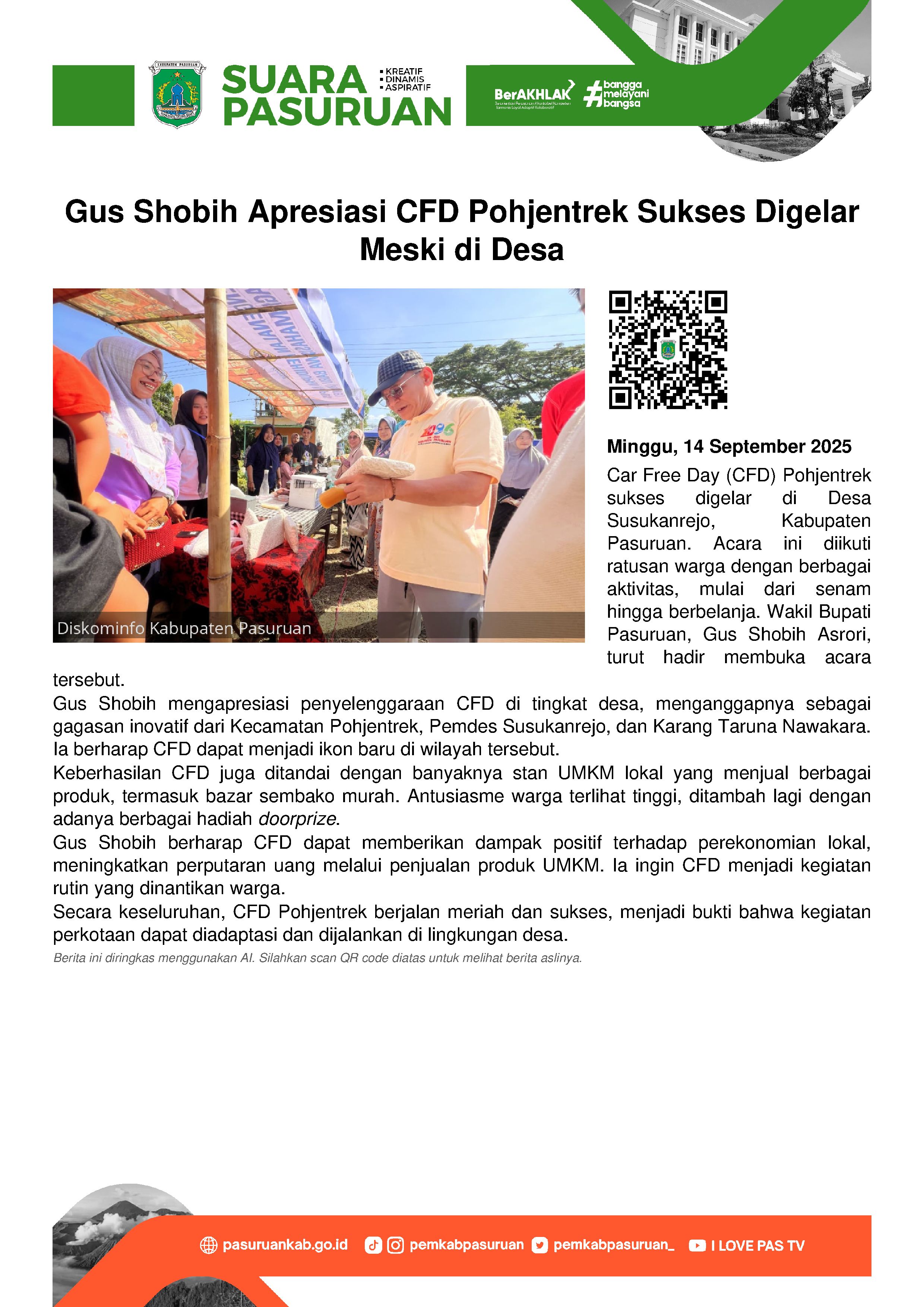 warga, Wakil Bupati Pasuruan, Shobih Asrori juga hadir untuk membuka CFD Pohjentrek.