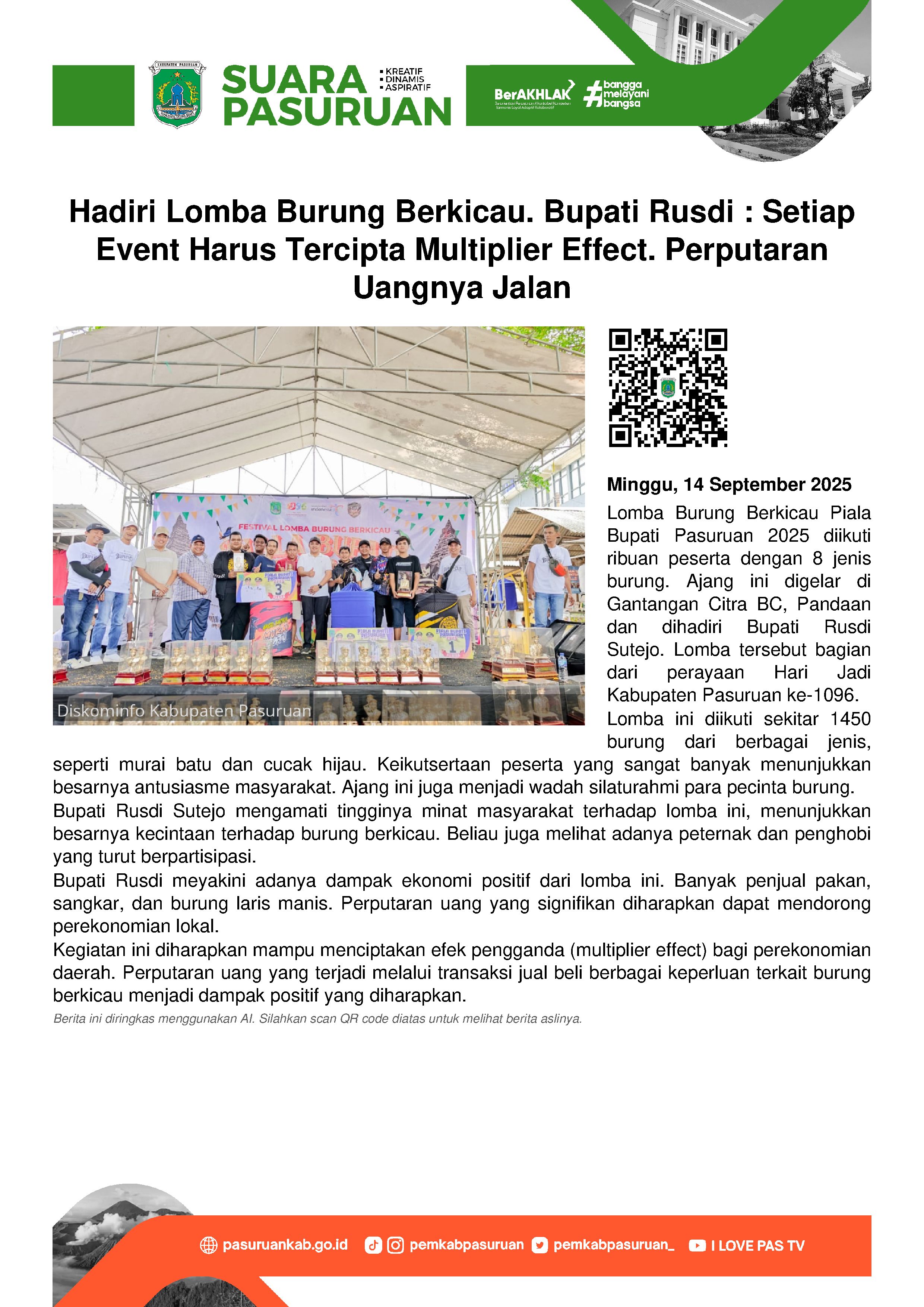 Pasuruan ke 1096. Kata Agus, lomba burung berkicau juga menjadi ajang