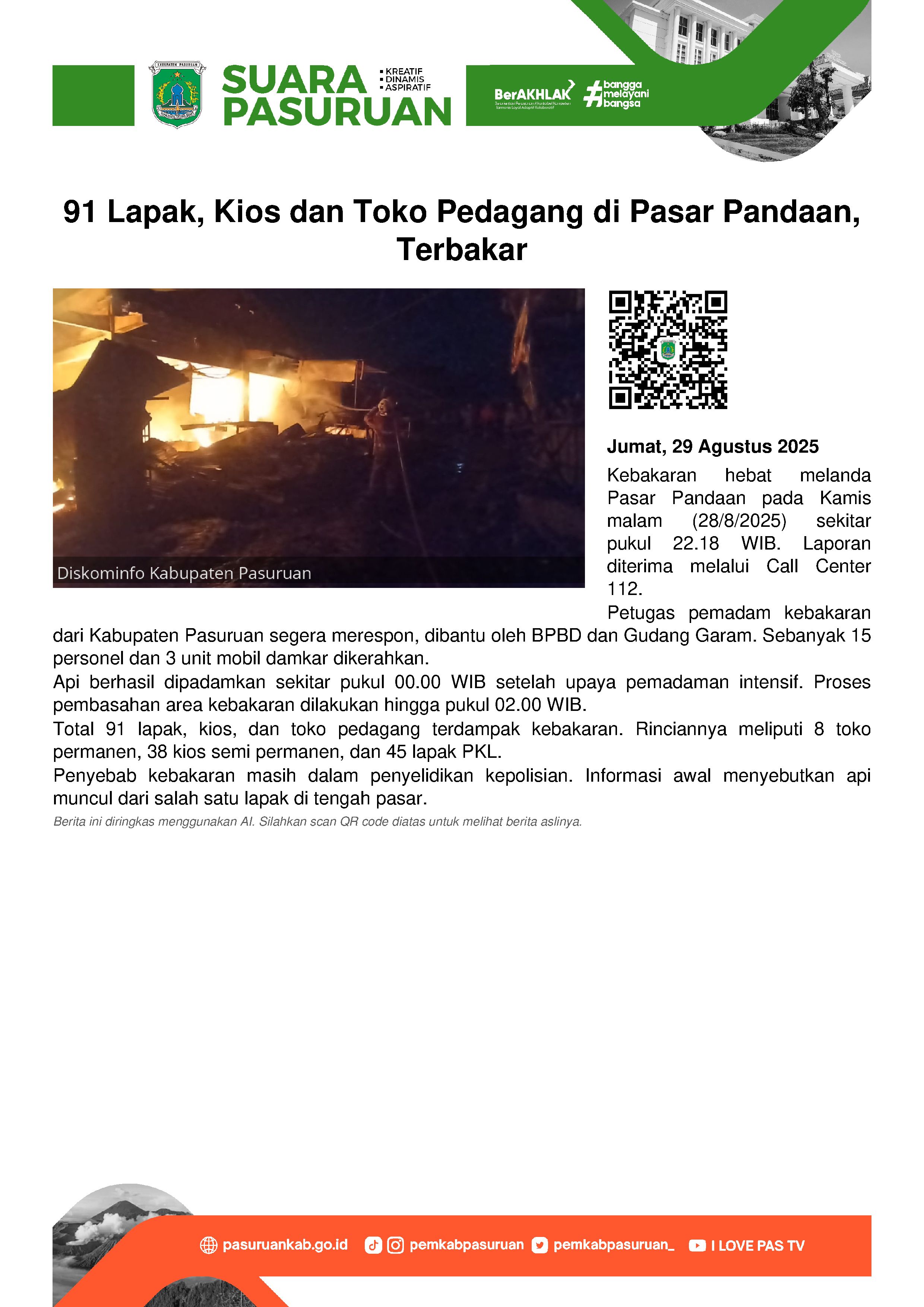 Ditambahkan Gatot, Disperindag juga menghimbau kepada pedagang agar tidak mematok harga relatif tinggi di pasaran, sekalipun ada keterbatasan ketersediaan barang. Termasuk berkoordinasi dengan distributor komoditi pangan, berikut Dinas Pertanian Kabupaten Pasuruan.