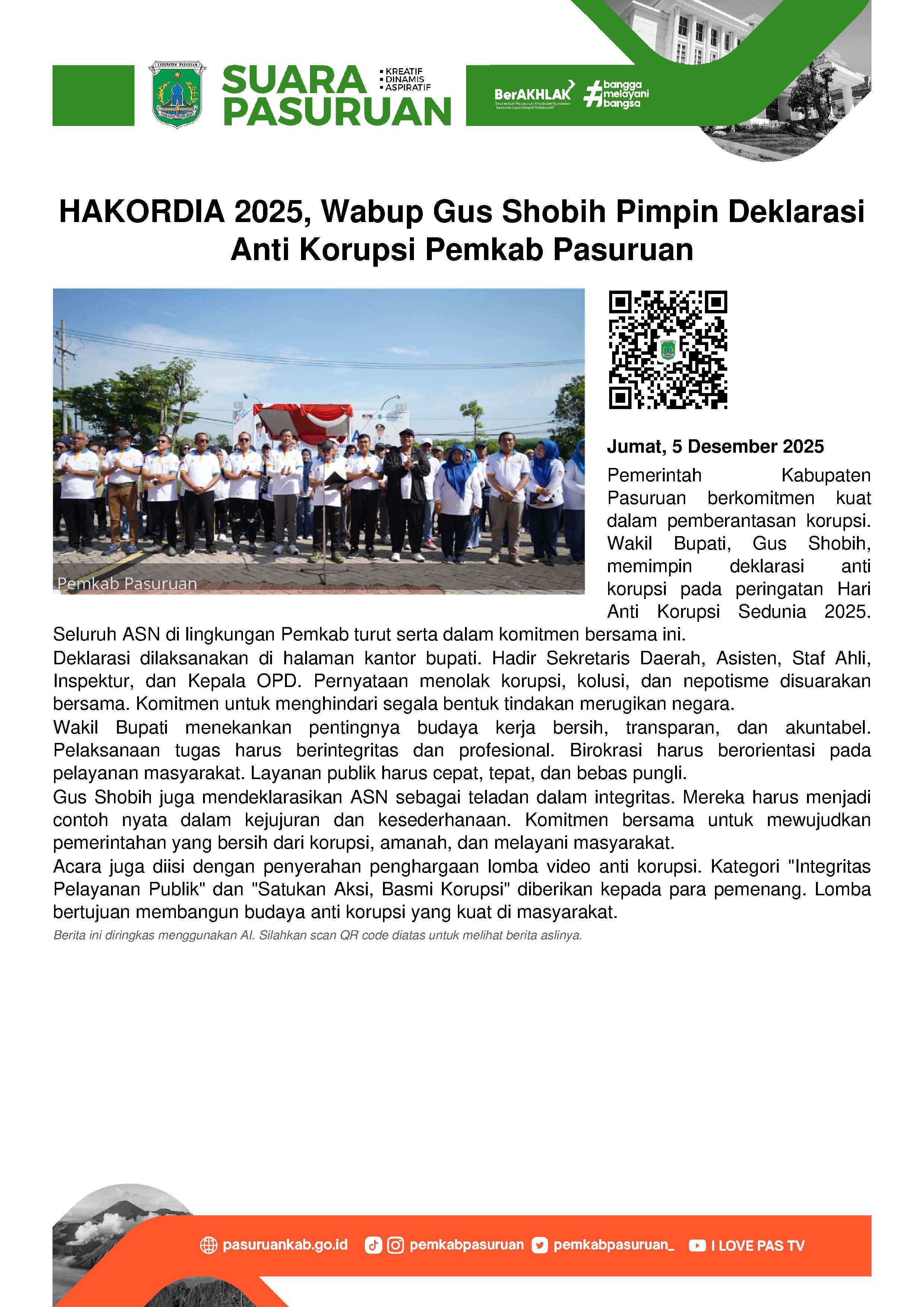 Bupati Pasuruan, Rusdi Sutejo memberangkatkan 9 orang atlet, pelatih dan official Komite Olahraga Masyarakat Indonesia (KORMI) Kabupaten Pasuruan untuk mengikuti Festival Olahraga Masyarakat Nasional (FORNAS) VIII Tahun 2025 yang akan digelar di Provinsi Nusa Tenggara Barat (NTB) pada 26 Juli hingga 1 Agustus 2025 mendatang.