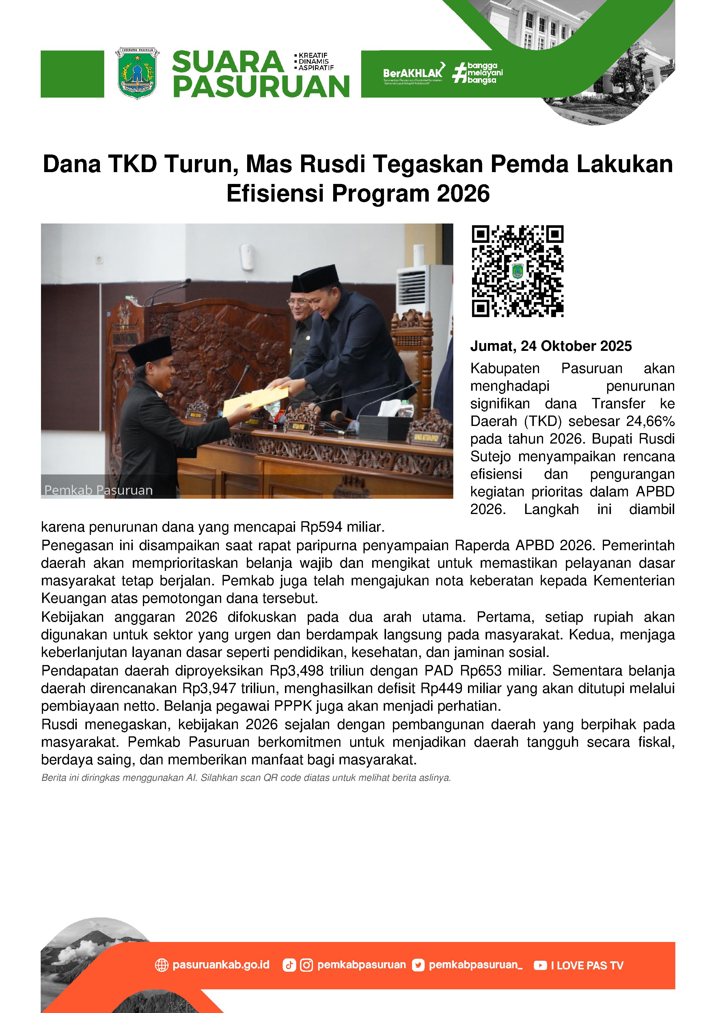 Mas Rusdi - sapaan akrab Bupati Pasuruan ini berharap penyaluran zakat, infaq dan sodaqoh di wilayah Kabupaten Pasuruan dapat terkoordinasi dengan baik. Sehingga akan tepat sasaran kepada orang-orang yang berhak menerima.