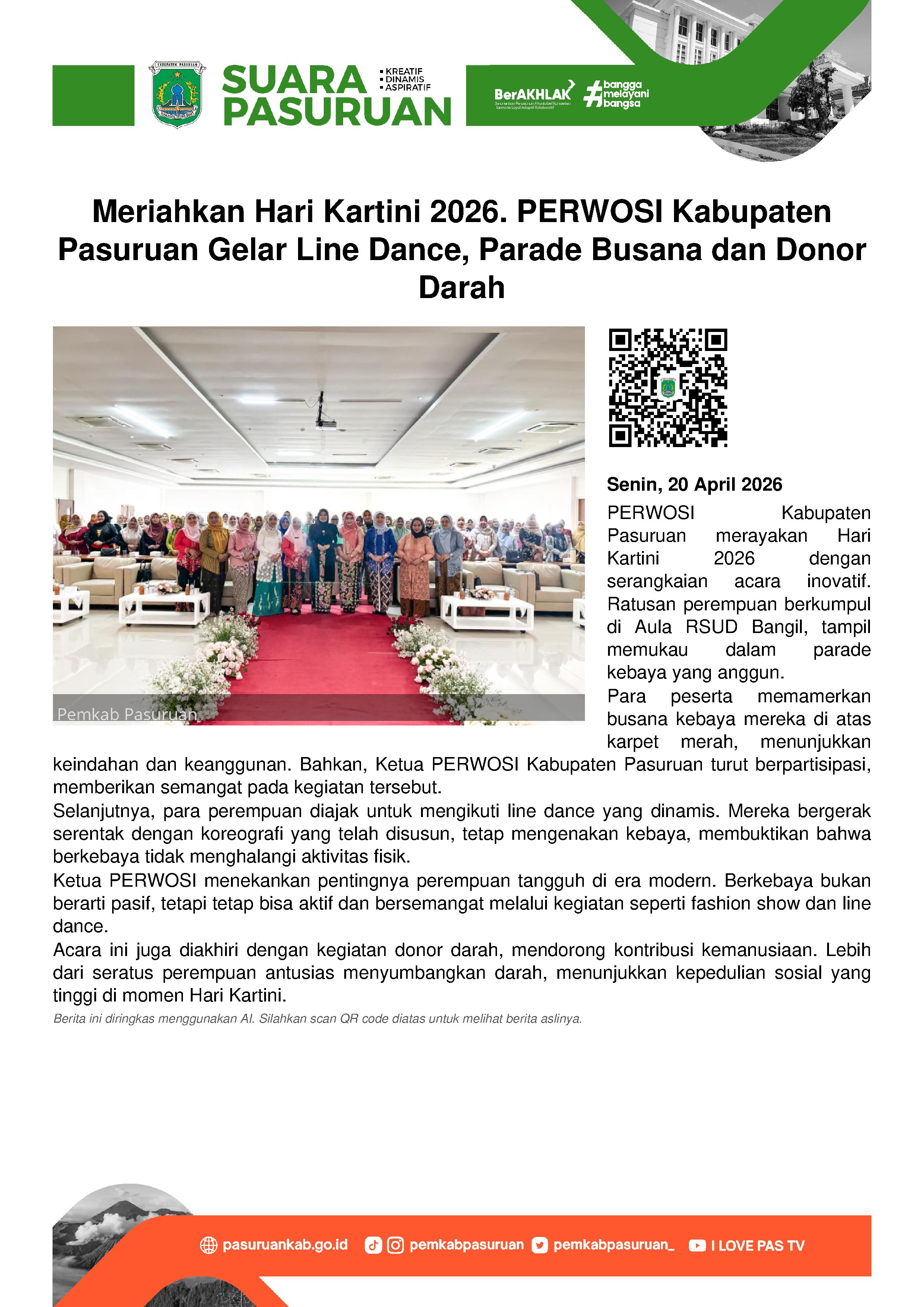 Persatuan Wanita Olahraga Seluruh Indonesia (PERWOSI) Kabupaten Pasuruan punya cara tersendiri untuk memeriahkan Hari Kartini tahun 2026.