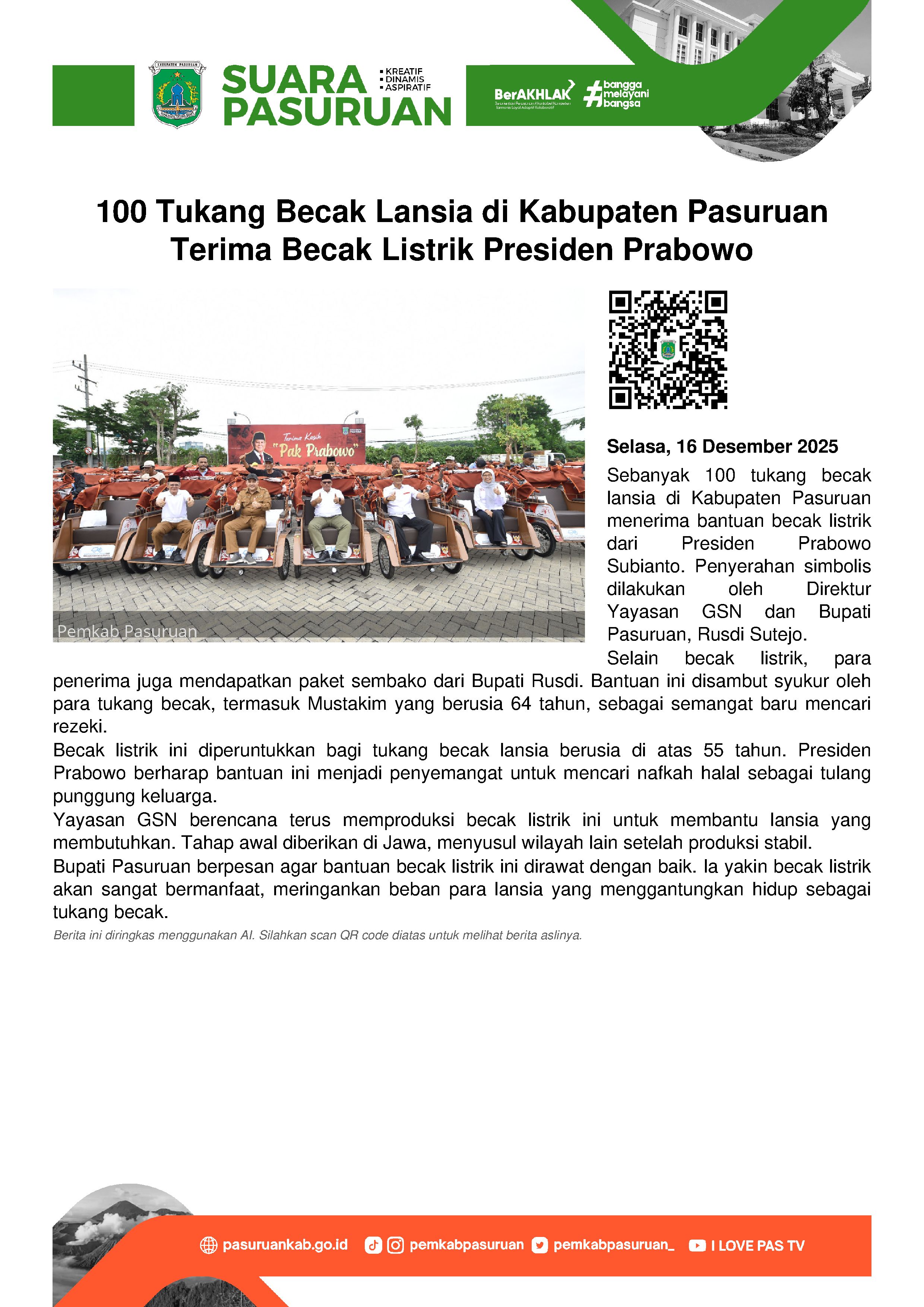 “Terima kasih untuk Bupati Irsyad Yusuf yang memberikan support luar biasa. Juga semua petugas medis yang sudah maksimal dalam membantu semua pasien Covid-19 di RSUD Bangil maupun RSUD Grati. Termasuk saya yang selama 16 hari dirawat, akhirnya ketika diswab lagi hasilnya negative,” ungkapnya.