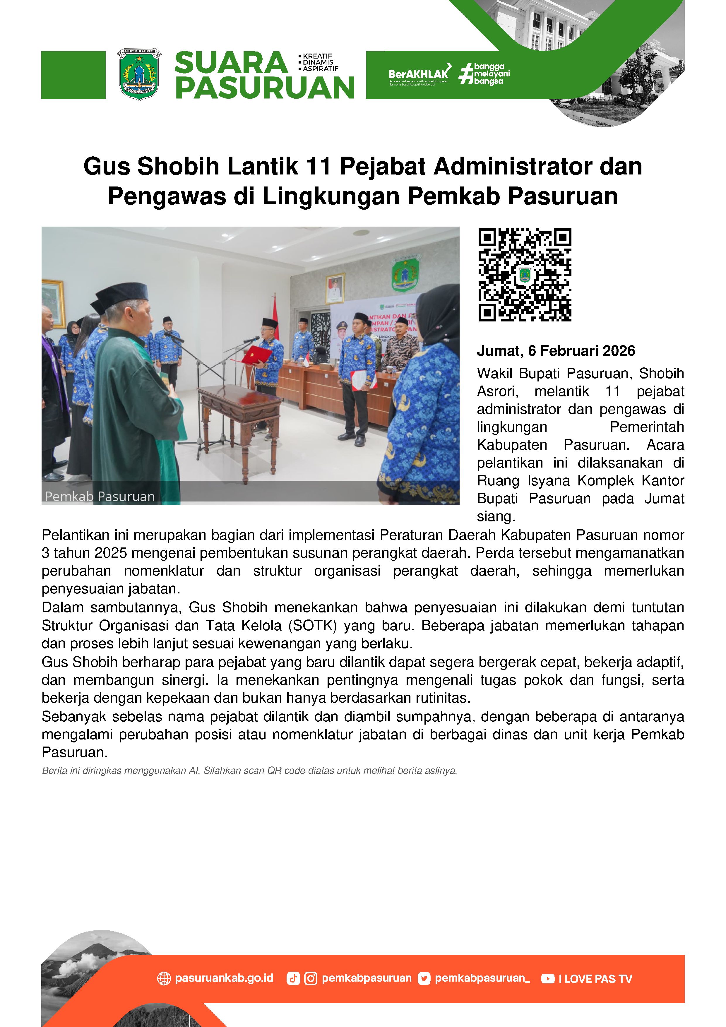 Sementara itu, Wabup Gus Shobih mengucapkan selamat kepada ribuan warga Kabupaten Pasuruan yang akan menunaikan rukun islam kelima pada tahun ini.