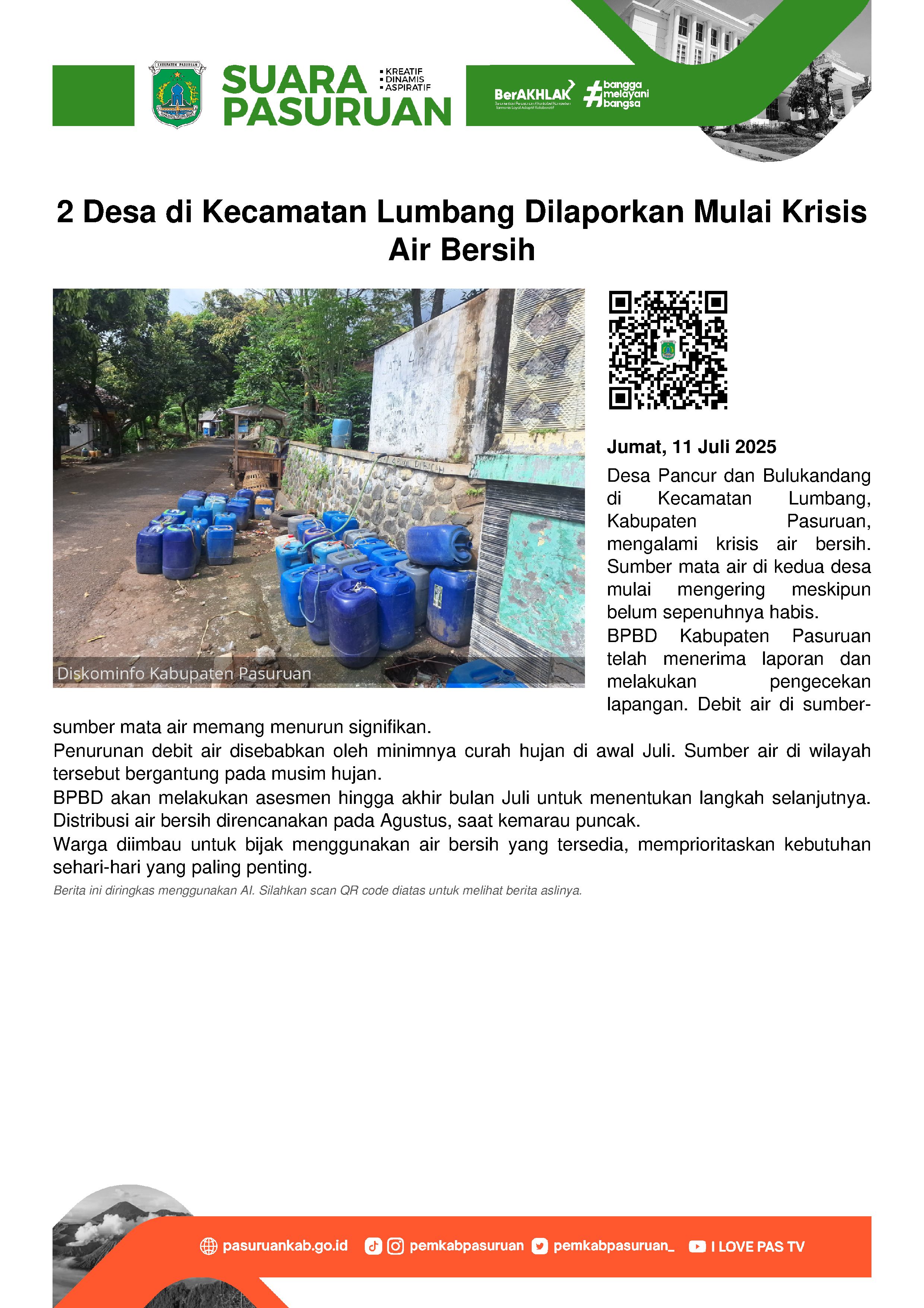 Dalam mewujudkan hal itu, Pemerintah Kabupaten Pasuruan melalui Tim Penggerak PKK Kabupaten Pasuruan menggelar Sosialisasi Rumah Sehat. Kegiatan ini merupakan kegiatan baru di Kabupaten Pasuruan yaitu kegiatan lanjutan dari Pola Hidup Bersih dan Sehat (PHBS).