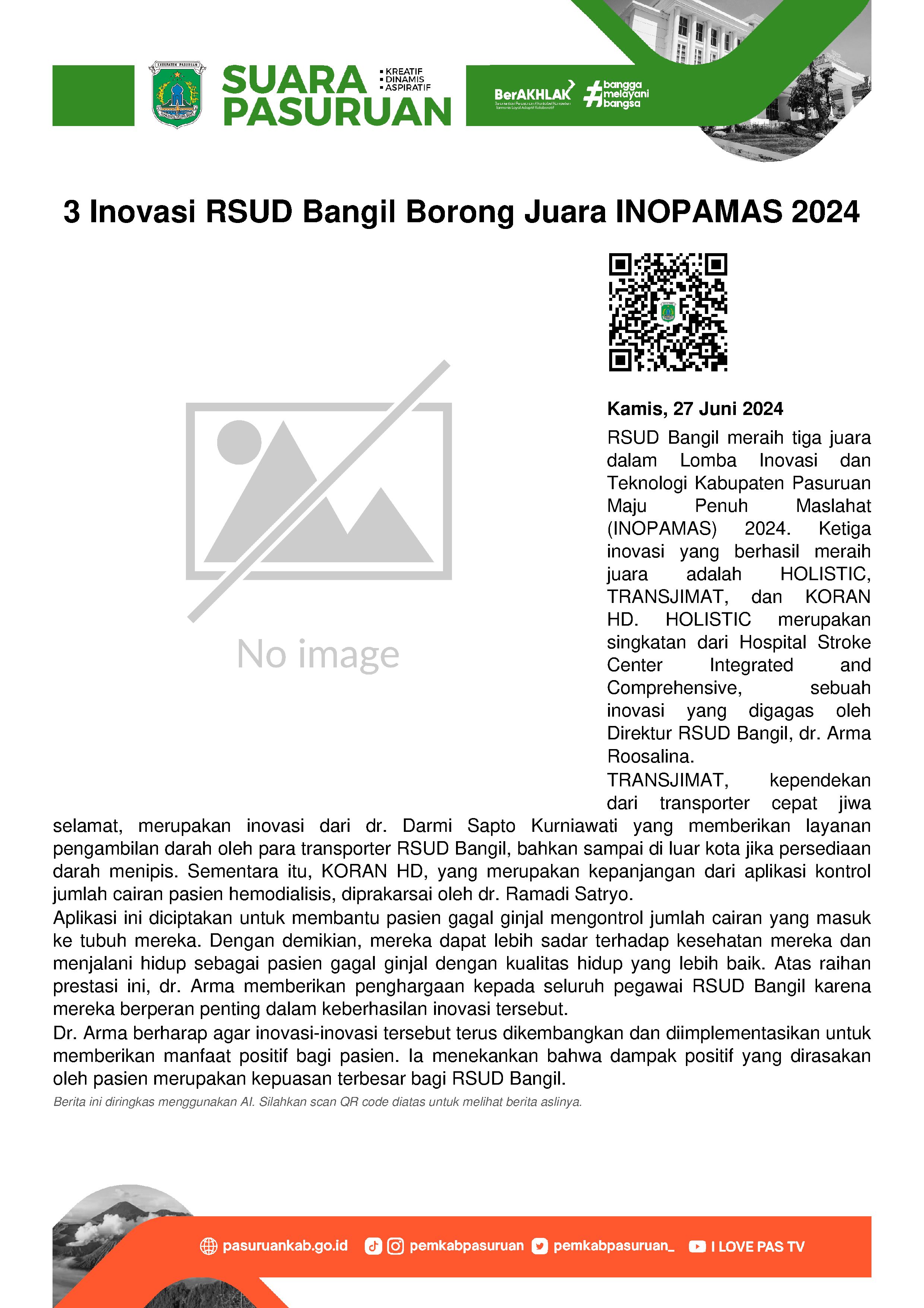 RSUD Bangil memborong juara dalam Lomba Inovasi dan Teknologi Kabupaten Pasuruan Maju Penuh Maslahat (INOPAMAS) 2024.