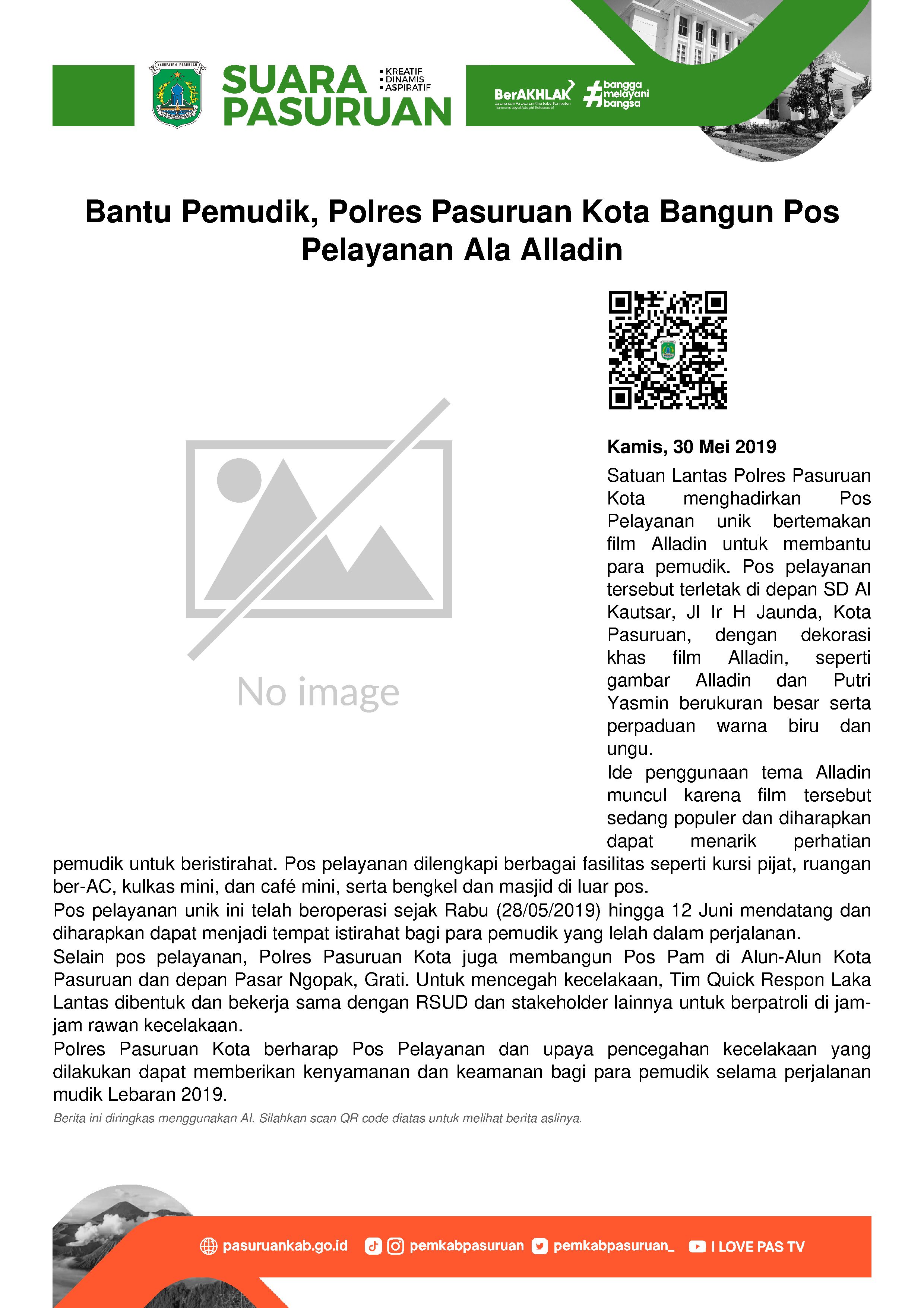 Kabag Ops Polres Pasuruan, Kompol Subadar mengatakan, saat libur lebaran, beberapa rumah akan ditinggal dan dibiarkan kosong oleh penghuninya. Nah, pelaku kriminal kerap memanfaatkan momentum ini, untuk membobol rumah kosong dan menjarah harta kekayaan di dalamnya. Oleh karenanya, dirinya mengimbau agar warga dapat meningkatkan sistem keamanan diri dan lingkungan, minimal dengan cara menitipkan pengawasan rumahnya pada Ketua RT setempat atau tetangga yang tidak mudik.