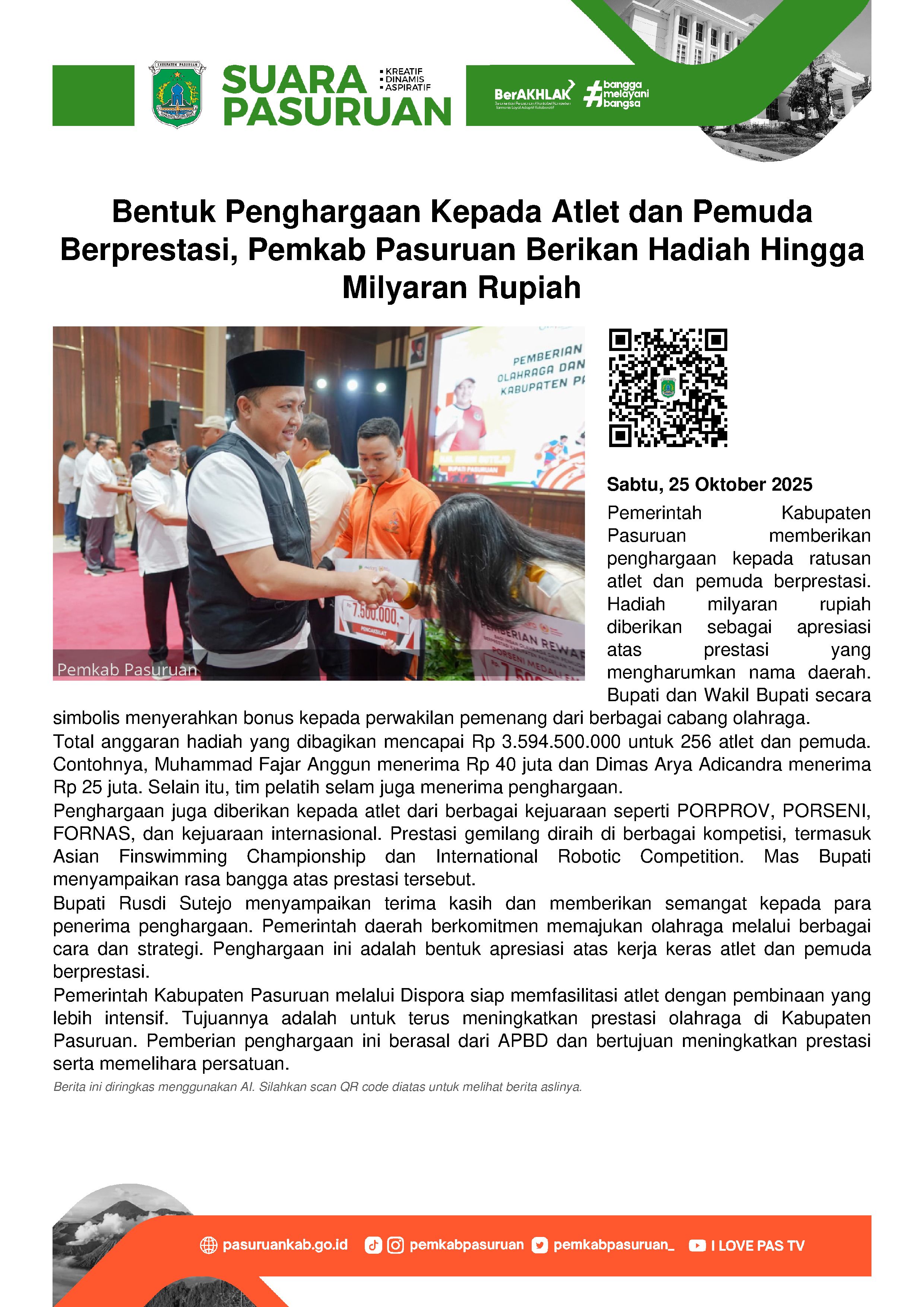 berprestasi yang telah mempersembahkan karya terbaiknya bagi Kabupaten Pasuruan