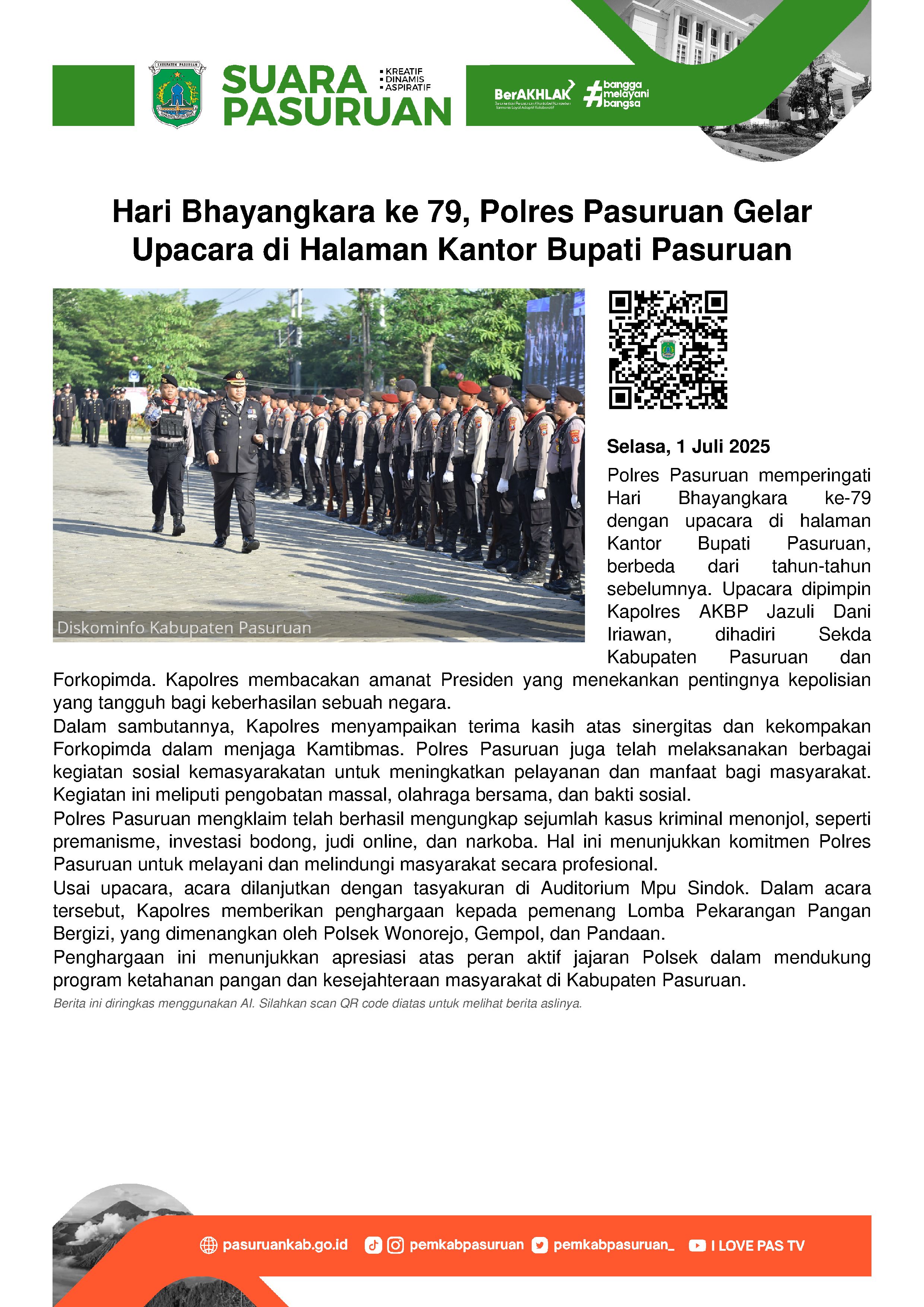 "Jaga nama baik Kabupaten Pasuruan. Tunjukkan etika dan perilaku warga yang menjunjung tinggi sopan santun," siingkatnya.
