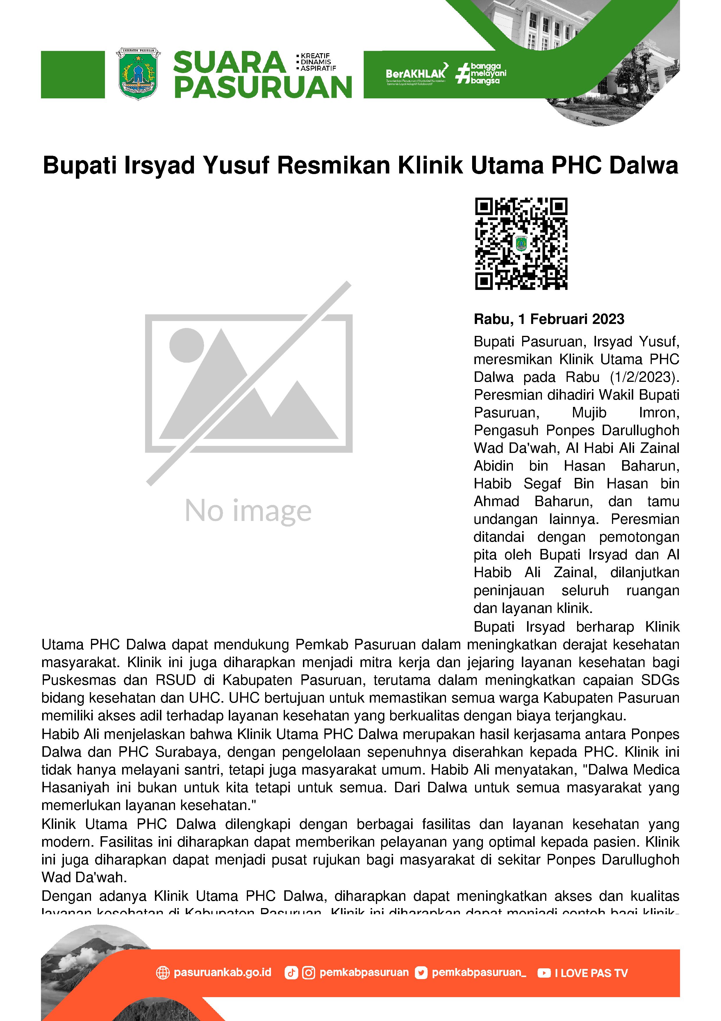 Tak hanya mendukung upaya Pemkab dalam meningkatkan derajat kesehatan masyarakat, Klinik Utama PHC Dalwa menurut Gus Irsyad-sapaan akrab Bupati Pasuruan ini juga merupakan mitra kerja dan jejaring layanan kesehatan bagi Puskesmas dan RSUD yang ada di wilayah Kabupaten Pasuruan. Utamanya dalam meningkatkan capaian SDGs bidang kesehatan dan juga Universal Health Coverage (UHC).