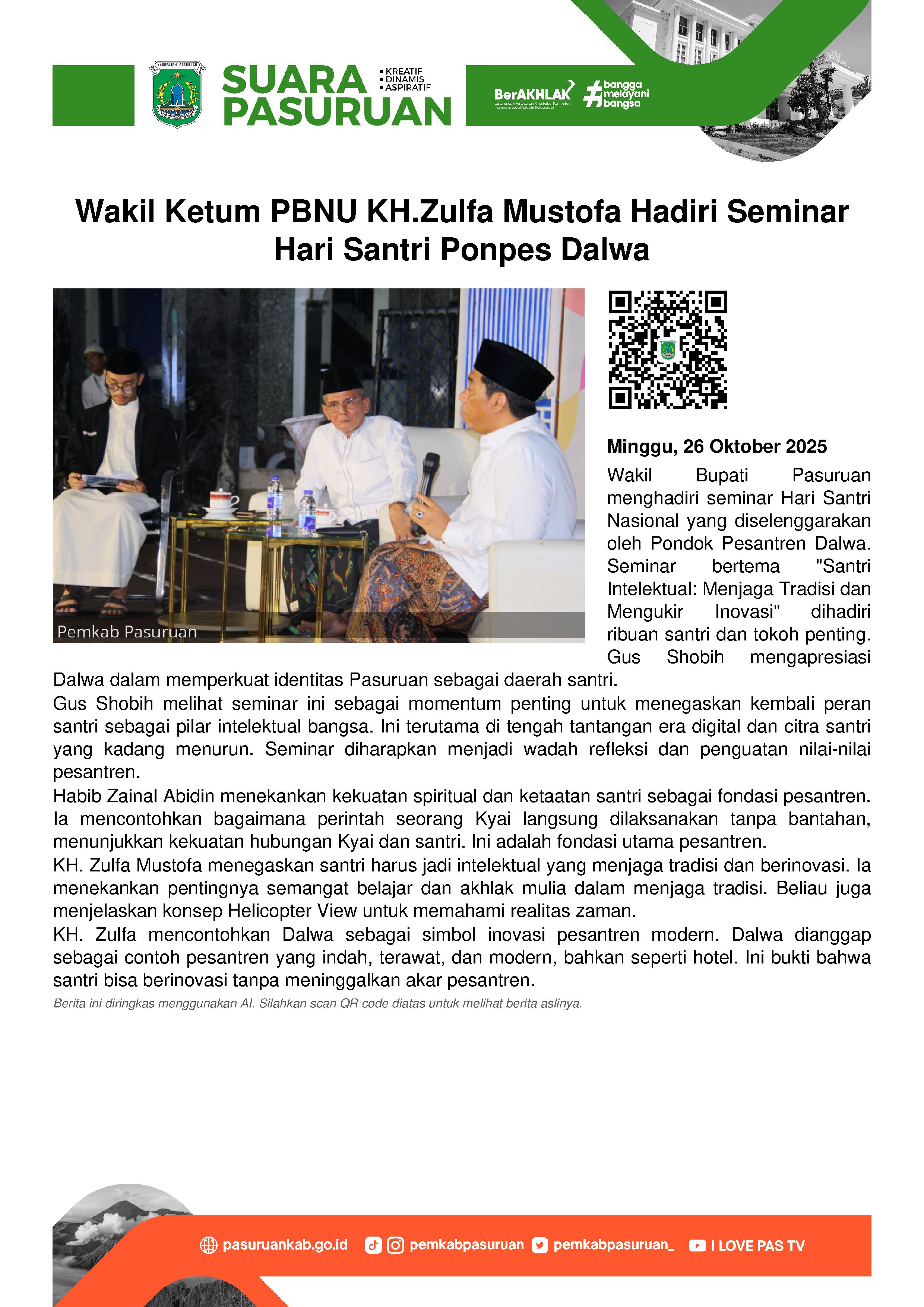 Di hadapan ribuan warga yang hadir, Gus Shobih menjelaskan bahwa Pekan Raya Pasuruan dilaksanakan selama satu minggu, yakni mulai 24-30 september 2025.