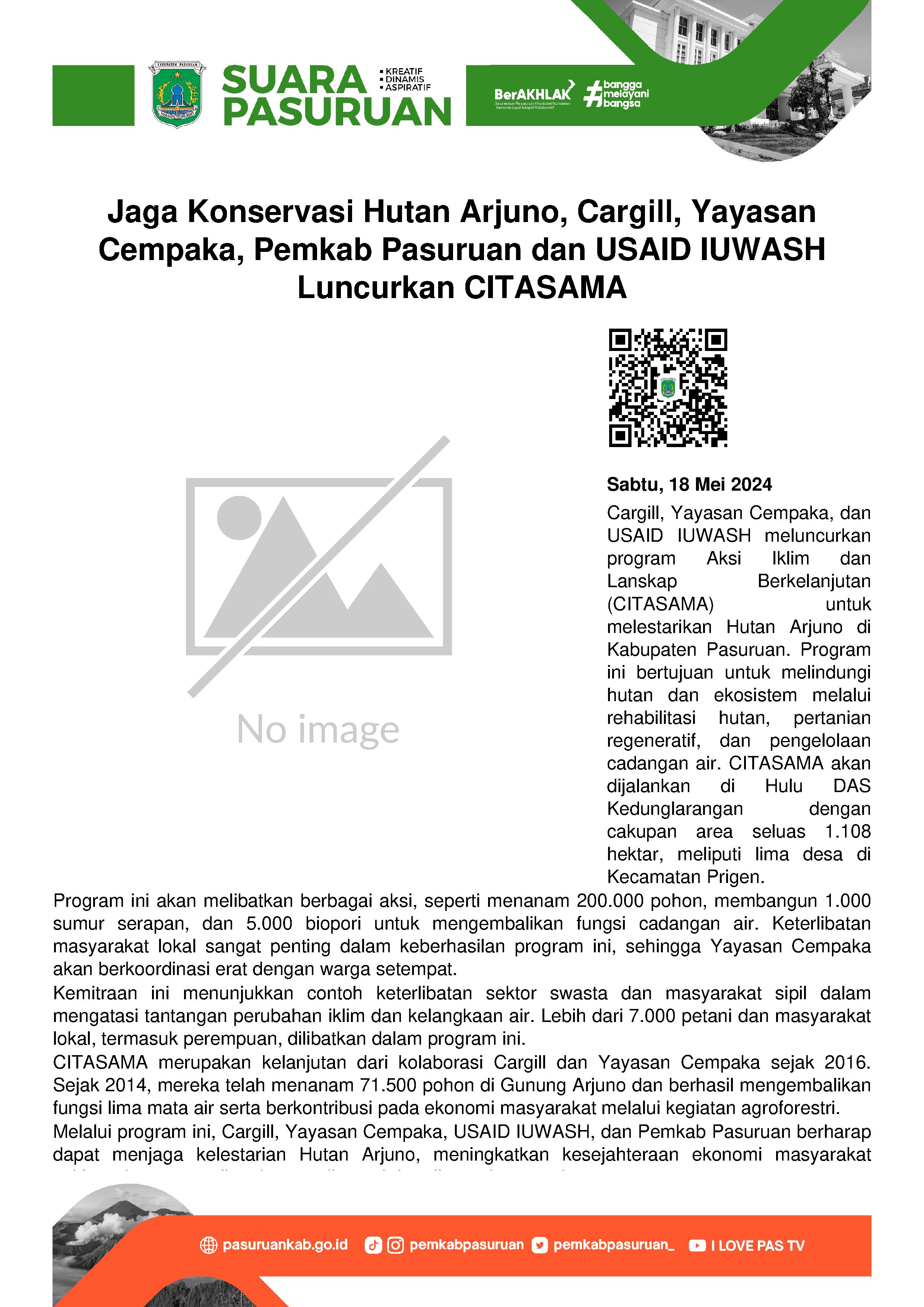 Terpisah, Sekda Kabupaten Pasuruan, Yudha Triwidya Sasongko menyampaikan bahwa Lebih dari 7.000 petani dan masyarakat lokal, termasuk perempuan yang dilibatkan dalam program ini. Tentu saja, hal tersebut sangat positif dalam meningkatkan keberlanjutan lingkungan dan kesejahteraan ekonomi.