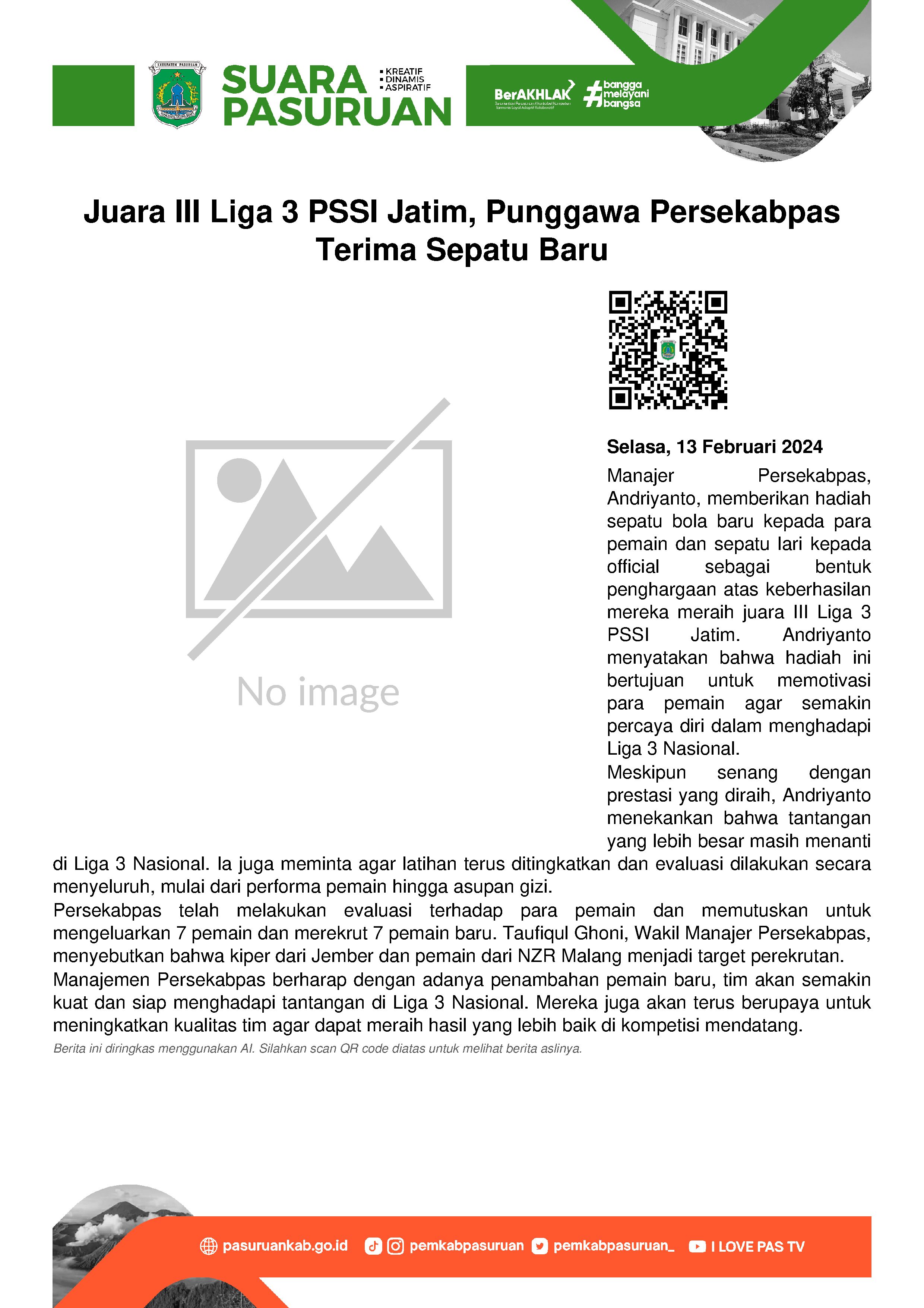 Manajer Persekabpas, Andriyanto kembali mengumpulkan para Punggawa Persekabpas beserta official, Senin (12/2/2024) malam.