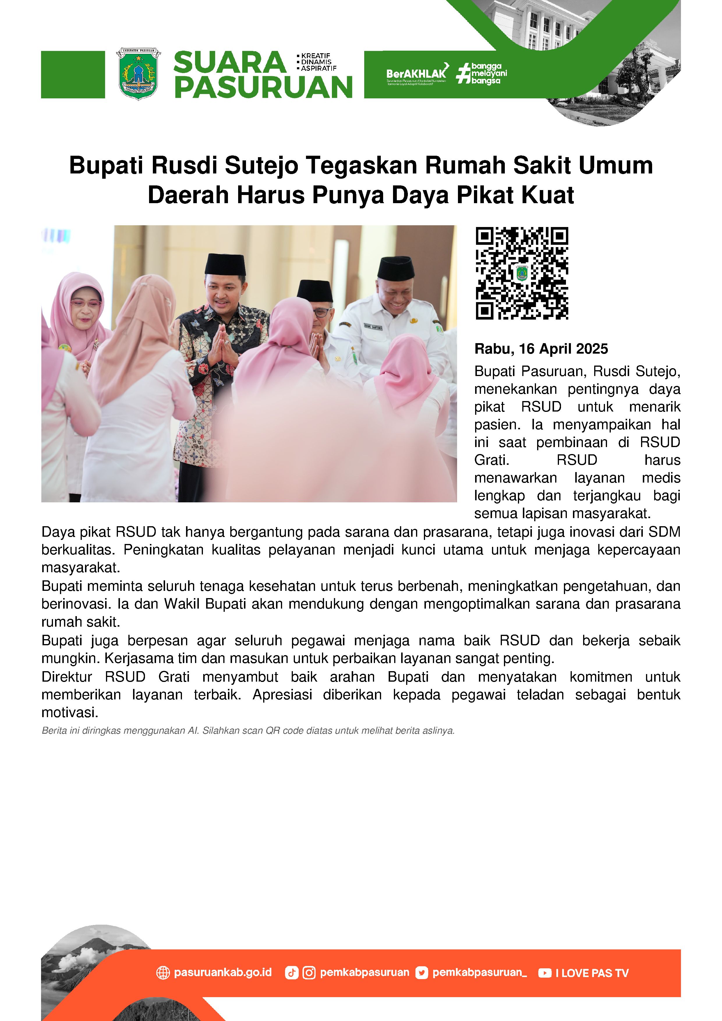 Lulis datang dengan ditemani beberapa anggota pengurus PKK lainnya, serta Camat Bangil, Rachmat Syarifudin, pada Jumat (03/03) siang. Tentu saja, kedatangan istri Bupati Irsyad Yusuf itu disambut hangat oleh keluarga dua jamaah tersebut.
