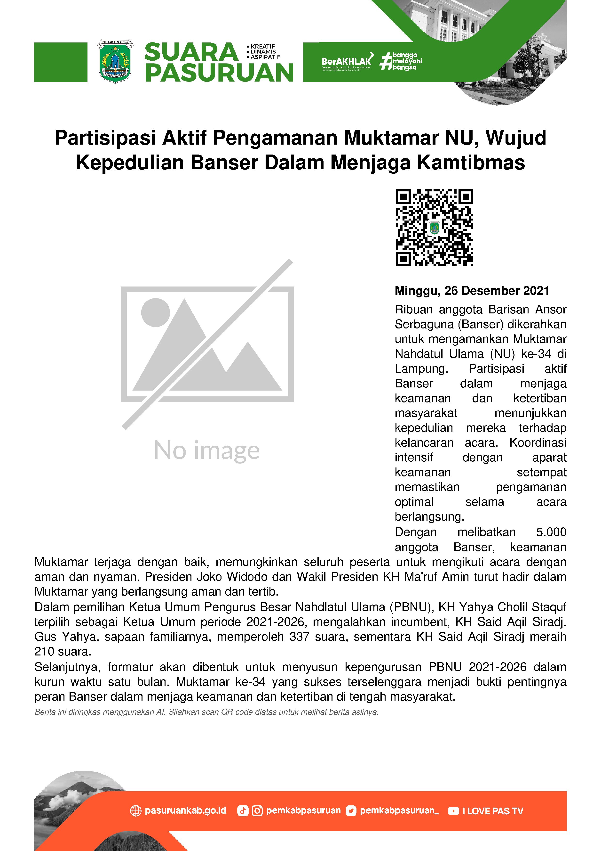 Terbukti, selama acara yang digelar di Pondok Pesantren Darussa'adah, Provinsi Lampung yang dihadiri oleh Presiden Joko Widodo dan Wakil Presiden KH Ma’ruf Amin tersebut berlangsung aman dan tertib. Bersama-sama melaksanakan tugasnya dalam mengamankan lokasi Muktamar, terhitung mulai tanggal 23-25 Desember 2021.