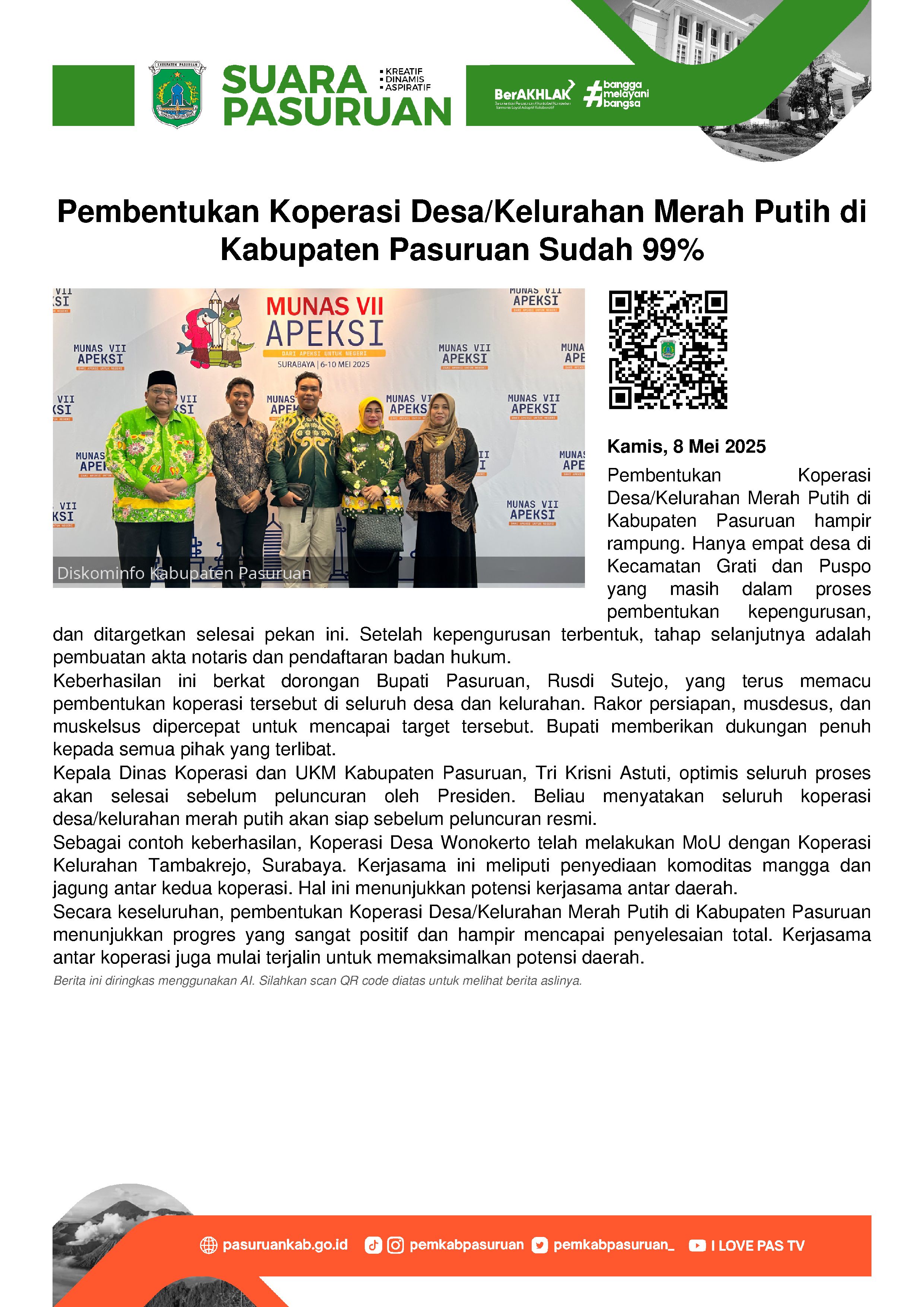 Lebih lanjut Krisni optimis seluruh tahapan pembentukan koperasi desa/kelurahan merah putih di Kabupaten Pasuruan akan selesai dalam waktu yang tak lama.