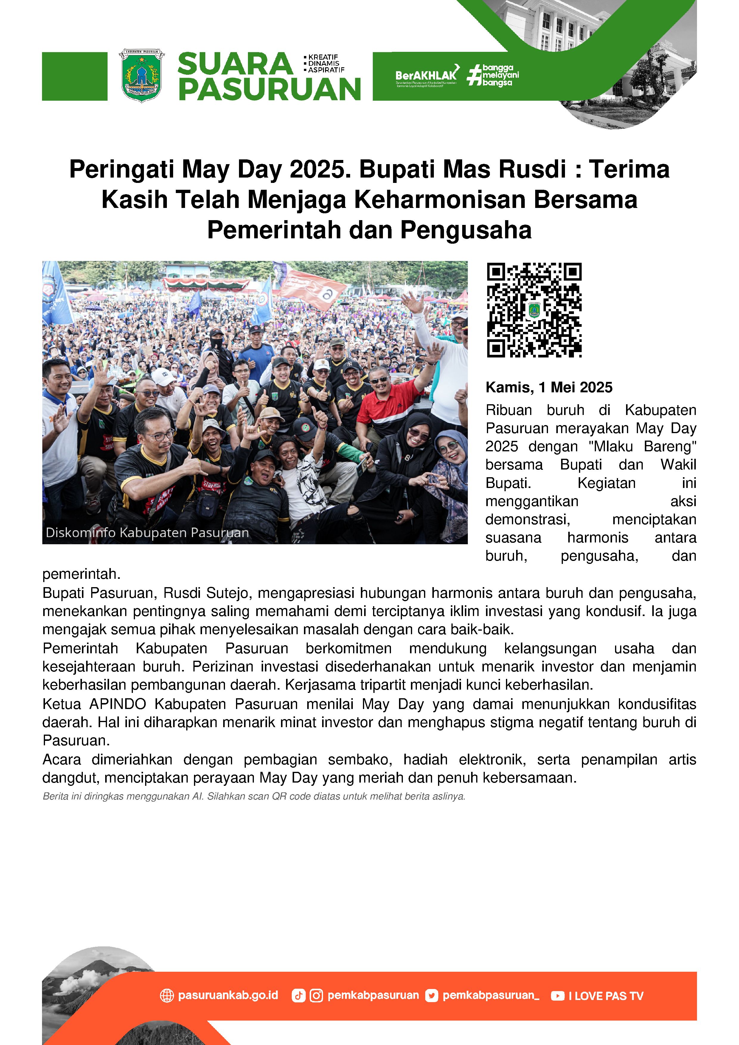 Lebih lanjut, Pj. Bupati Andriyanto juga mengucapkan selamat atas terselenggaranya acara tersebut. Sekaligus meminta masyarakat agar tidak berfikir Desanya tidak diperhatikan oleh Pemerintah Daerah. Dengan kehadirannya bersama Sekretaris Daerah dan jajaran Kepala Perangkat Daerah terkait dalam acara tersebut sebagai pertanda jika Pemerintah Daerah memperhatikan semua yang ada di Kabupaten Pasuruan. Termasuk diantaranya di Desa Kalirejo, Kecamatan Kraton.