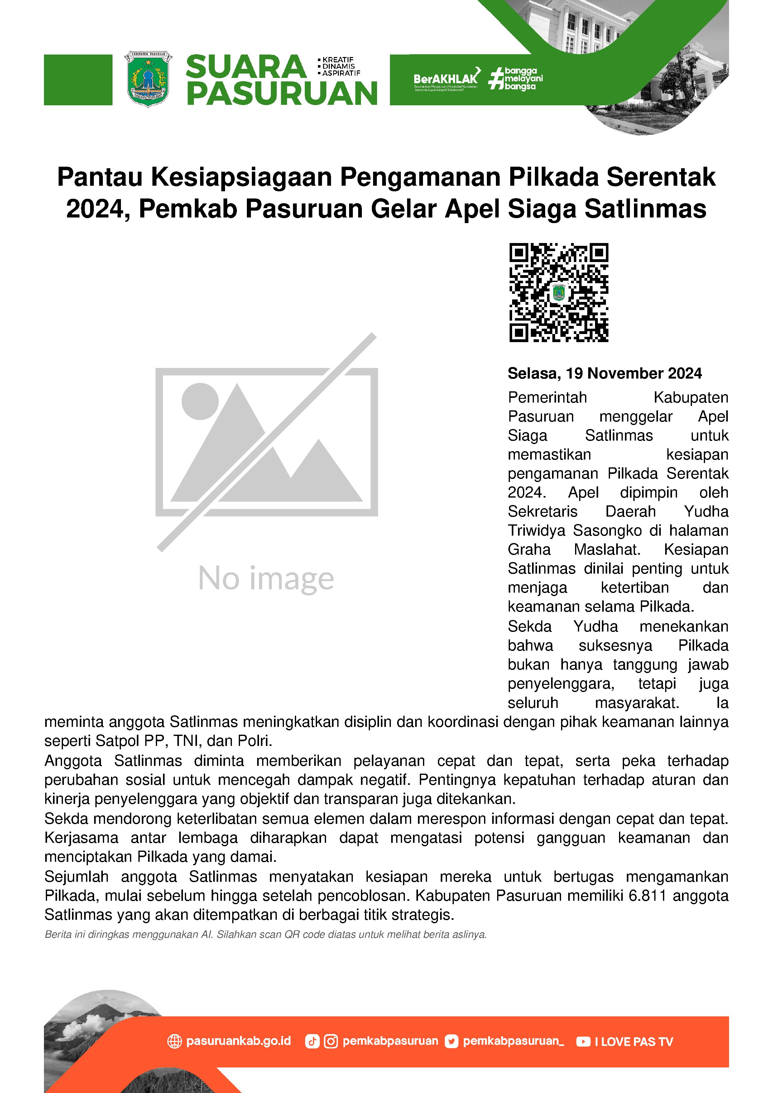 Sementara itu, Pj Bupati Pasuruan, Nurkholis menegaskan di dalam PMR ada Tri Bhakti PMR. Yakni meningkatkan ketrampilan hidup sehat, berkarya dan berbhakti di masyarakat, serta mempererat persahabatan nasional dan internasional.
