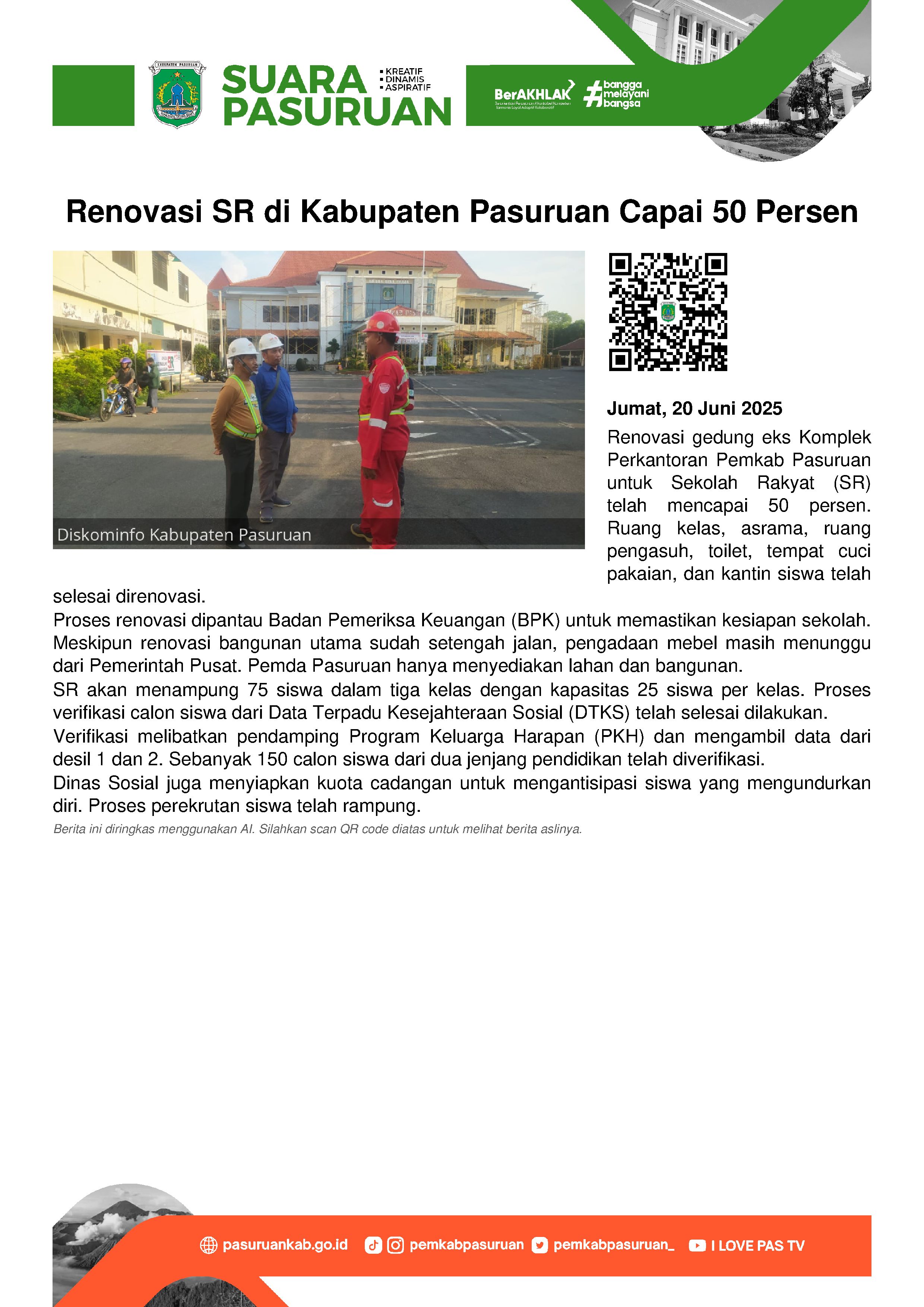 Hal tersebut seperti yang disampaikan Plt Kepala Dinas Sosial Kabupaten Pasuruan, Pantja Wisnoe Ismojo di sela-sela meninjau SR, Jumat (20/6/2025) pagi.