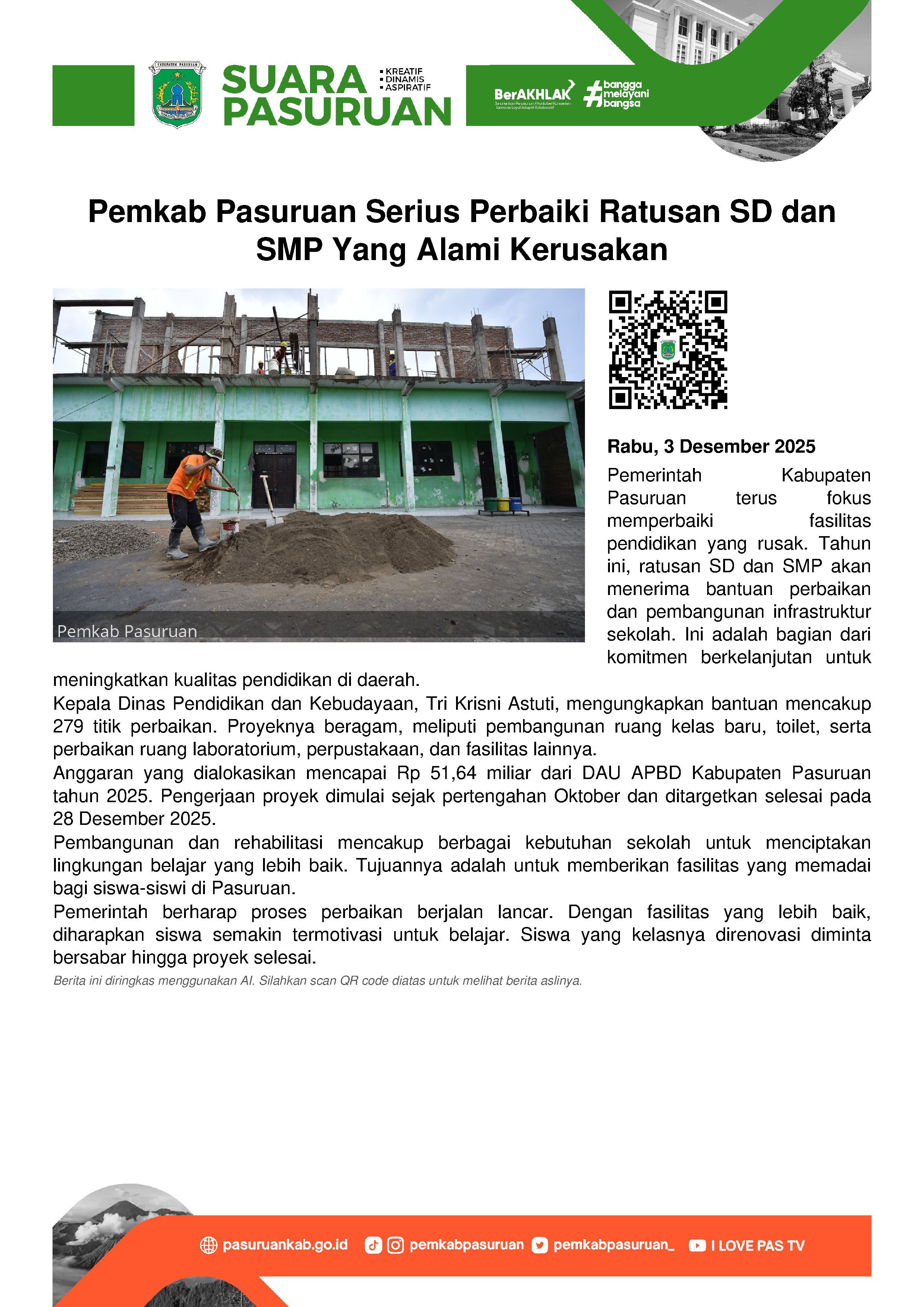Pj Bupati Pasuruan, Andriyanto menegaskan bahwa perbaikan tersebut merupakan bagian dari pelayanan yang harus diberikan kepada seluruh masyarakat. Terlebih momennya juga mendekati Hari Raya Idul Fitri 1445 Hijriyah, sehingga sudah pasti dipadati oleh aktifitas pengendara yang mudik alias pulang kampung.