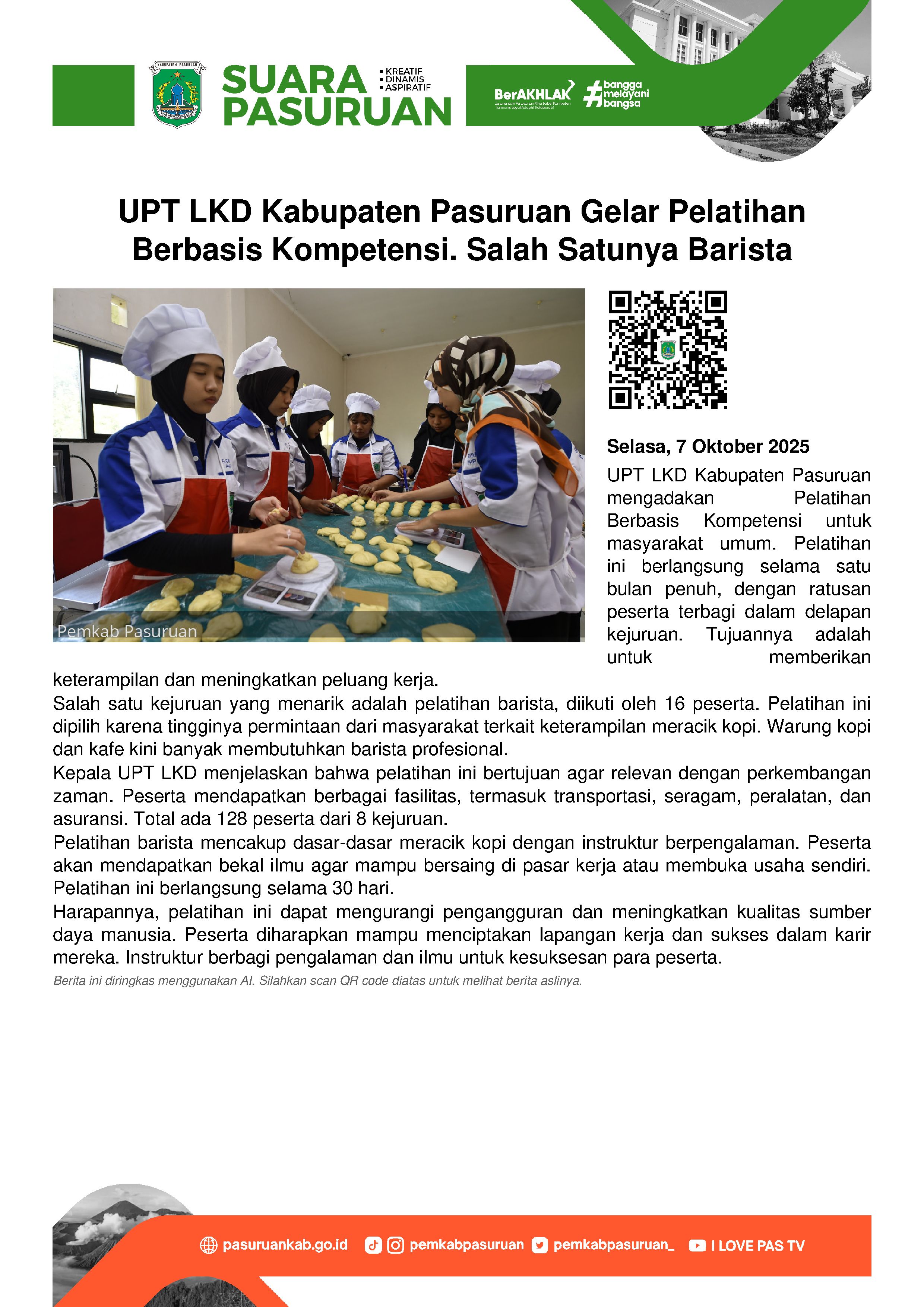"Kami ingin jadi UPT LKD yang up date dengan perkembangan zaman. Makanya kami pilih pelatihan barista, karena sekarang sudah jadi mata pencaharian yang menjanjikan," kata Farid di sela-sela kesibukannya, Selasa (7/10/2025).