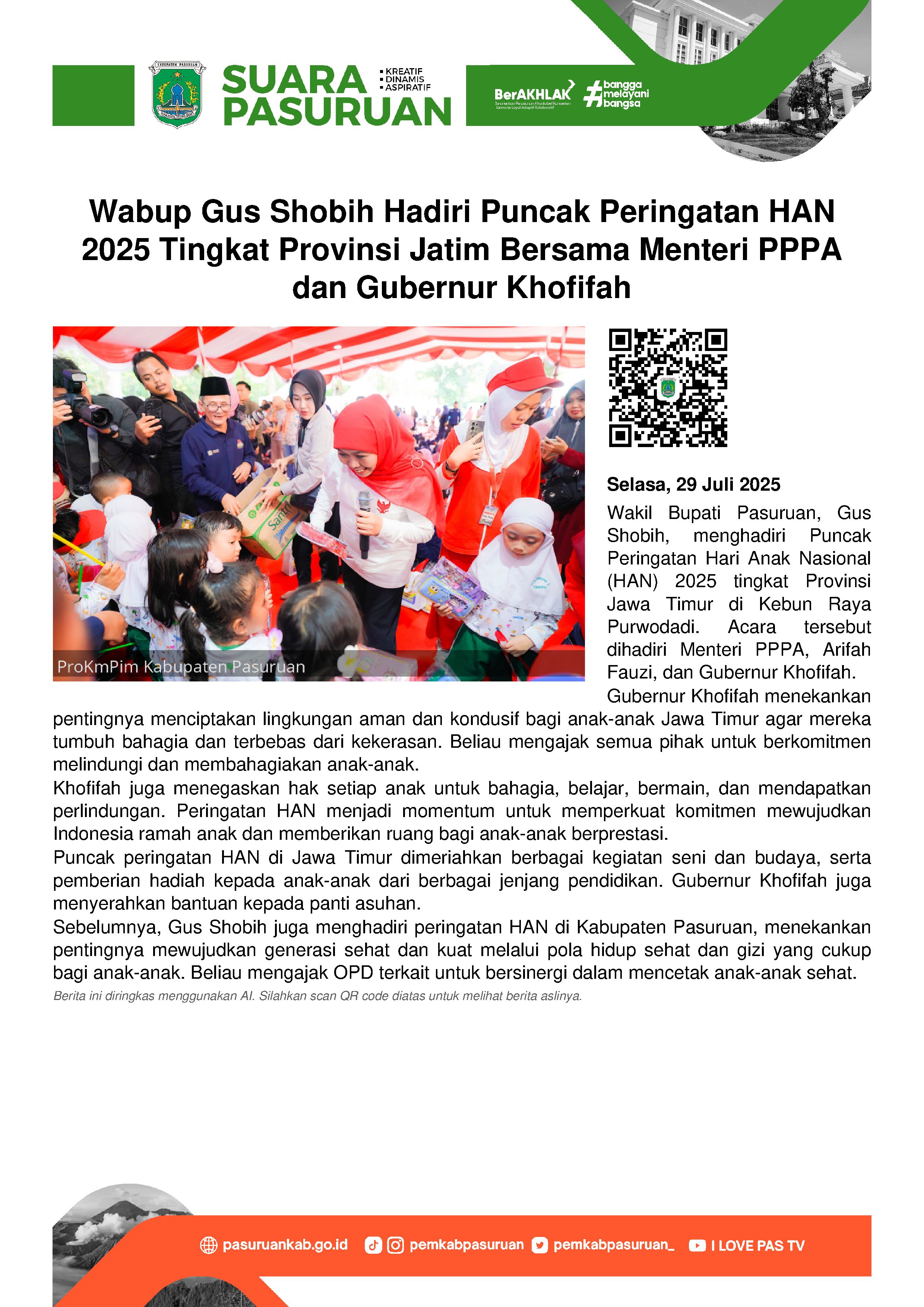 Peringatan Hari Anak Nasional (HAN) 2025 Tingkat Provinsi Jawa Timur. Turut