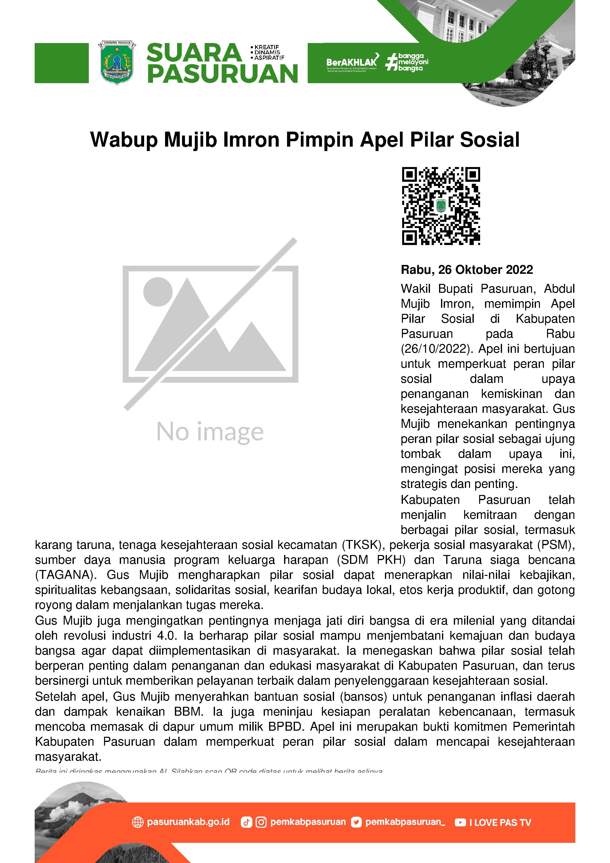 Dengan bertemakan "Bersama Pilar Sosial Bersatu Padu Untuk Kesejahteraan Masyarakat Kabupaten Pasuruan”, Gus Mujib-sapaan akrab Wabup Pasuruan ini menegaskan bahwa kehadiran pilar sosial sebagai ujung tombak dalam upaya penanganan kemiskinan telah mendapatkan apresiasi dari pemerintah dengan posisi penting dan strategisnya.