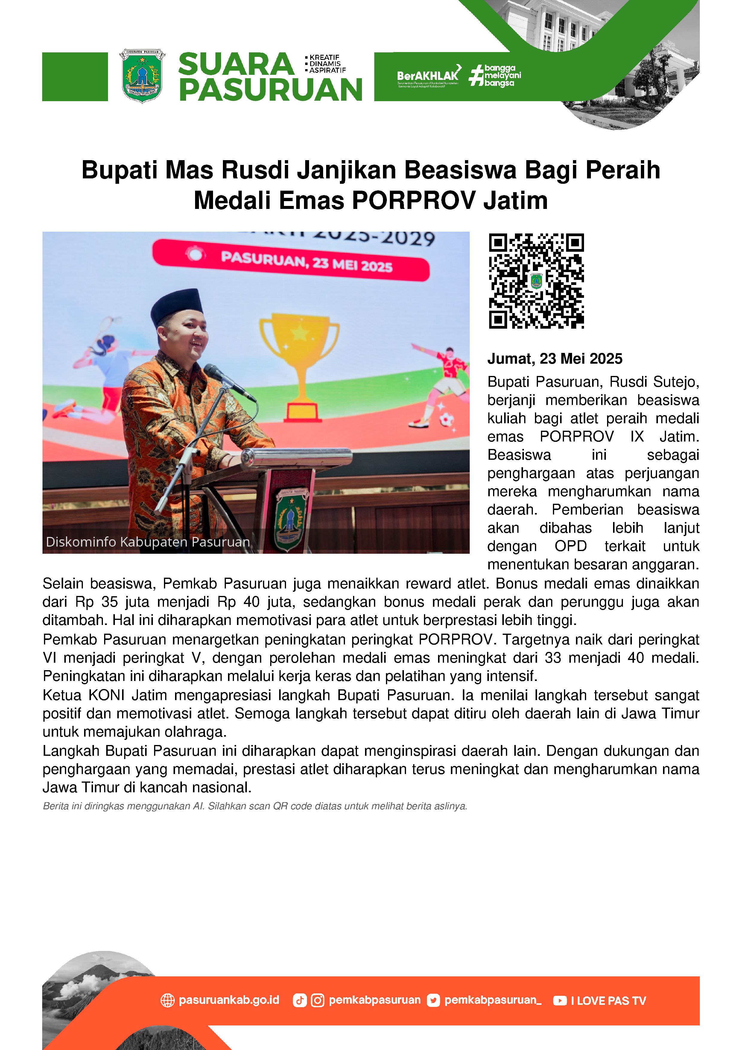 "Saya ucapkan selamat kepada seluruh anggota Paskibraka Kabupaten Pasuruan terpilih tahun 2025. Pesan saya satu, kibarkan bendera merah putih dengan sempurna," harapnya.